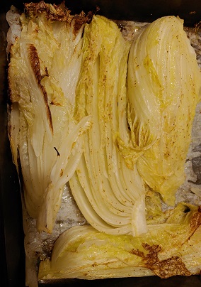 Once the cabbage is roasted pull it out of the oven and let cool for a few minutes