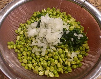 Rinse the dry peas and soak for at least 8 hrs in water.