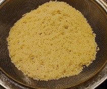 Place millet in a bowl and rinse it several times draining the water with a fine mesh strainer (the grains are quite small).