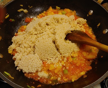 Cook 6-7 minutes until the tomatoes are well cooked, add the cooked millet and check the salt. The millet will quickly absorb any excess liquid.