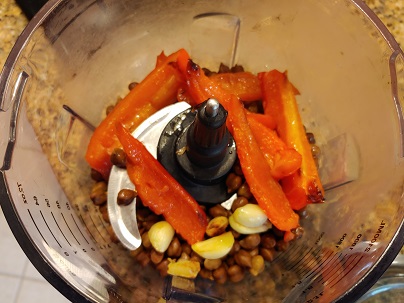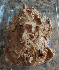 Blend to produce a dense, smooth mix. If you do have a modern food processor this should come relatively easy. I have a very old blender so I need to add a little water to the mix.