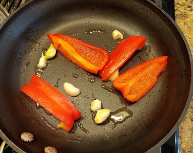 While the chickpeas are cooking, place a tablespoon of oil in a pan and roast the red pepper