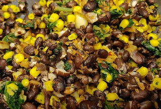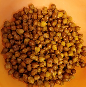 Chickpeas are a sustainable crop that requires little water, is low in calories and generally healthy. Black chickpeas are not always available in grocery stores, but they can be found in ethnic stores such as Indian grocery stores. The variety used here is more of a brown color. Regular chick peas can also be used for this recipe, however I recommend the black variety if available.