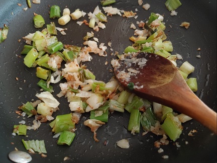 The end part of the leaves may still be hard so it is better to remove the end part and slice the tender leaves.