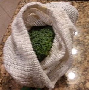 For this reason, I decided to invest a little amount of money (perhaps $30) to purchase reusable produce bags. I purchased two types: One is a natural fiber that has the consistency of a net, the second one is a synthetic pouch. They both come in a set of many sizes which are large enough to contain any amount of vegetables. Especially the canvas ones seem small, however they stretch and expand with the weight of the vegetables. I use the natural fiber bags at the grocery store and the other type to store the vegetables in the refrigerator, this way I never run out of them.