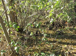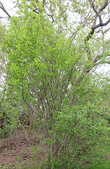 Buckthorn is an aggressive shrub originating from Europe. It quickly spreads in shaded areas. Leaves are developed early in the season and they last until late fall, thereby casting a shade that doesn’t allow sunshine to reach the younger oaks. The emergence of early leaves impacts the bloom of spring ephemerals. In addition these plants grow densely, reducing the growth and survival of native shrubs and trees.