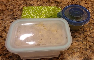 Now that my daughter is in high school I often pack dinner leftovers for lunch. A reusable, microwave safe food container and a metal fork or spoon can be brought back and placed in the dishwasher. Even plastic forks can be washed and reused multiple times.