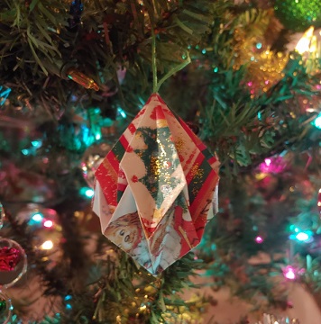 Pine cones make nice tree decorationsHere is another great use for fall leavesRecycle used wrapping paper