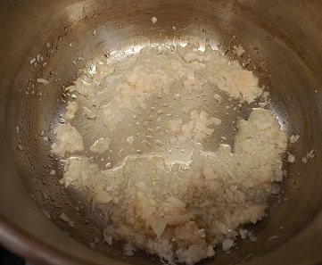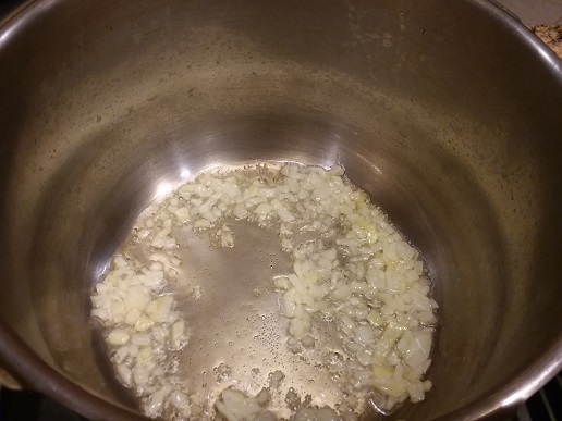 - In the same pot warm up a tablespoon of oil, add finely sliced onions and cook until they become translucent