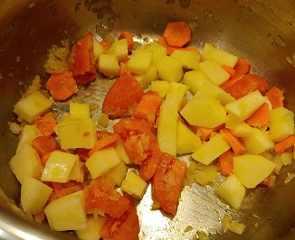- When the tomatoes are well cooked (10 minutes) blend everything with a hand-held blender